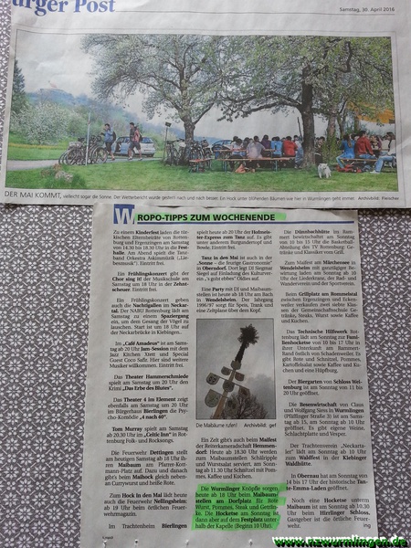 Schon im Vorfeld wurde der Maibaum gereppelt, die Gränze hergerichtet und der Baum dann fürs Stellen fertig gemacht. Am Stellen selber machten wir wieder im Anschluss eine kleine Hocketse. Der Andrang war riesig, sodass die Helfer samt Imbisswagen überm Limit waren. Ein großer Dank an all die vielen Gäste, Hammer ;o).