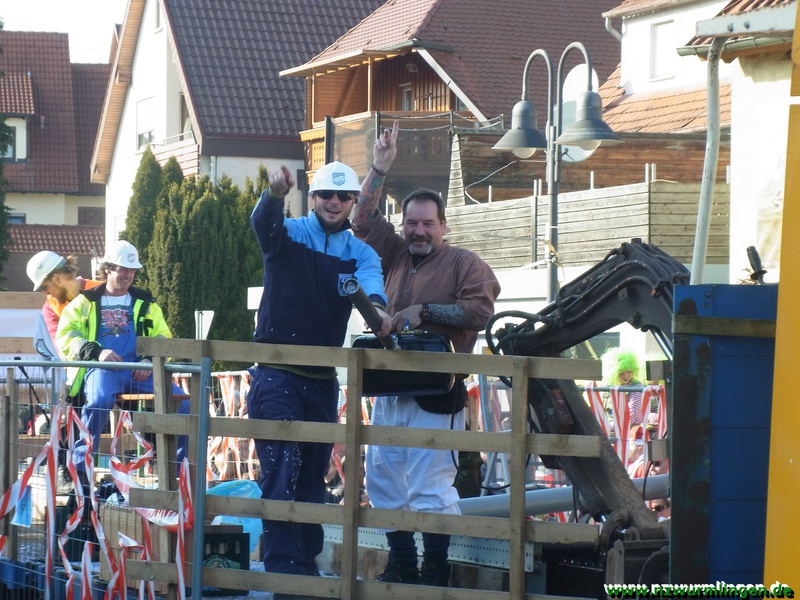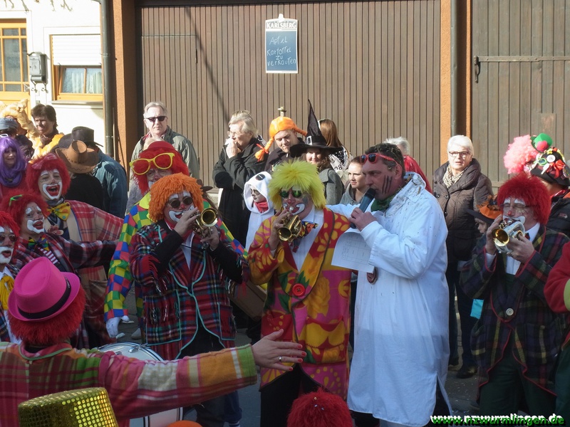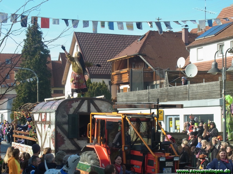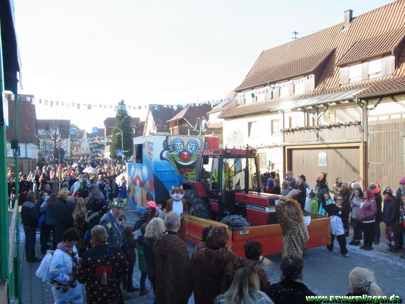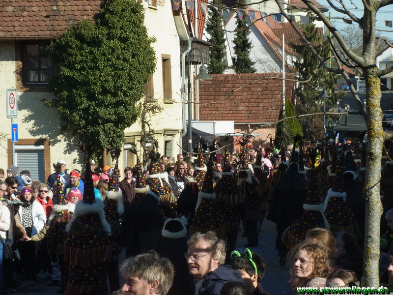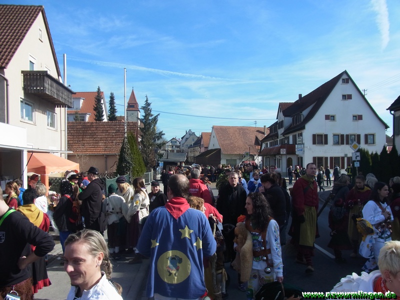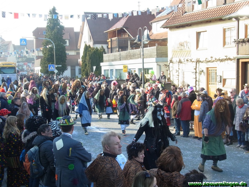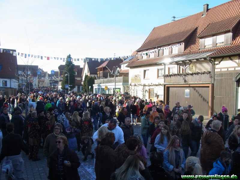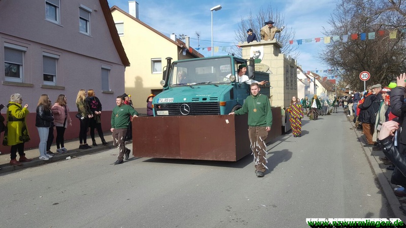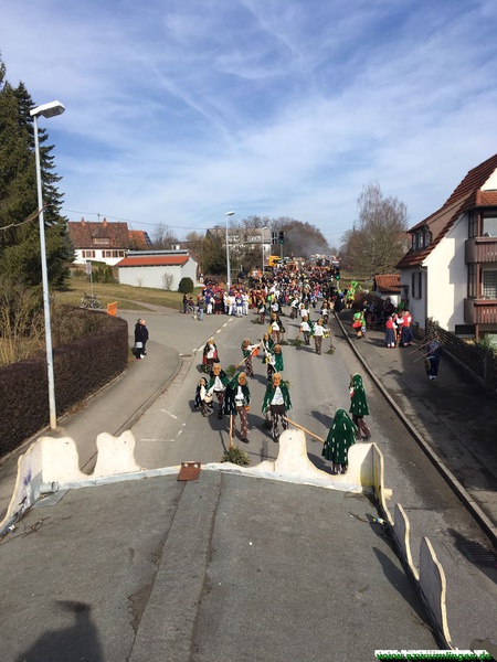 Fast pünktlich um kurz nach zwei startete die Narrenschar, angeführt vom Musikverein Wurmlingen. Bei Kaiserwetter mit strahlendem Sonnenschein und ca. 3000 Zuschauern begrüßten unsere Moderatoren