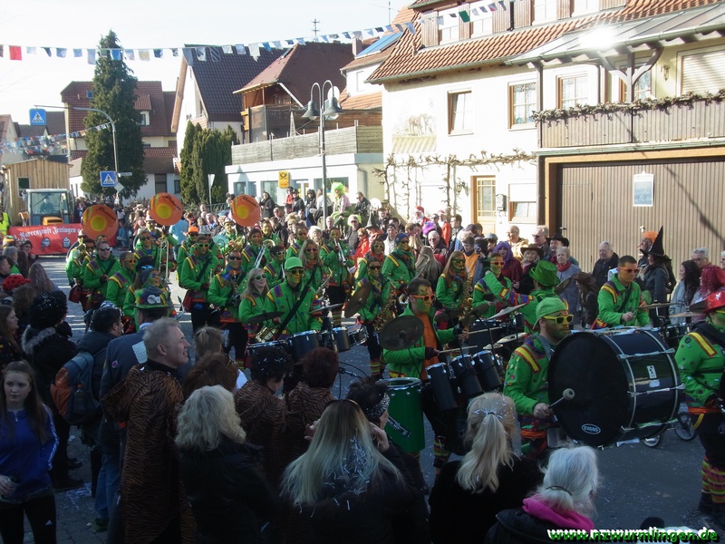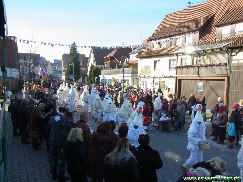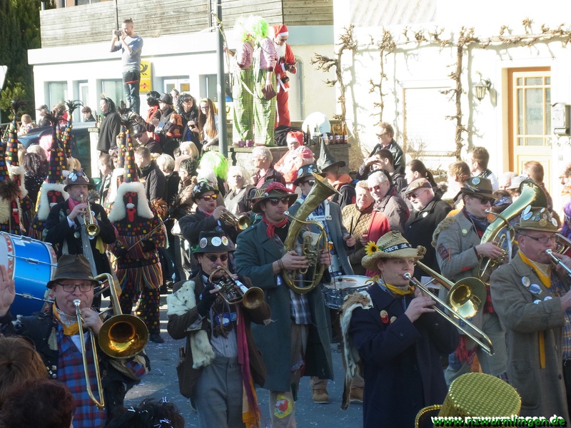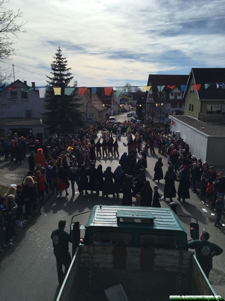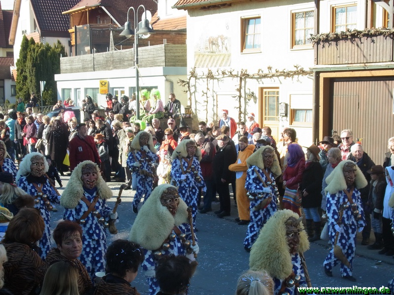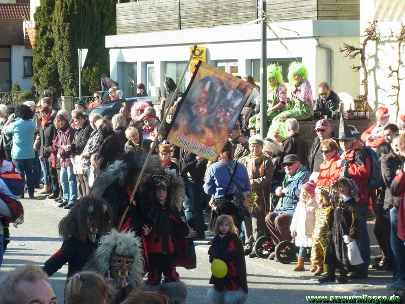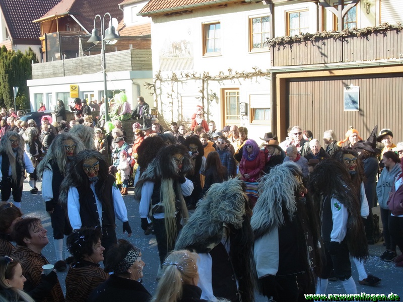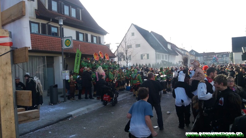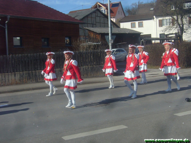 Fast pünktlich um kurz nach zwei startete die Narrenschar, angeführt vom Musikverein Wurmlingen. Bei Kaiserwetter mit strahlendem Sonnenschein und ca. 3000 Zuschauern begrüßten unsere Moderatoren