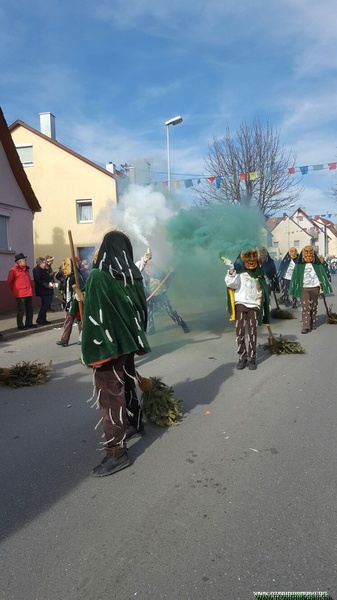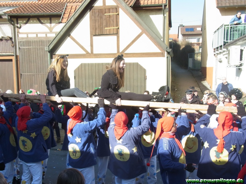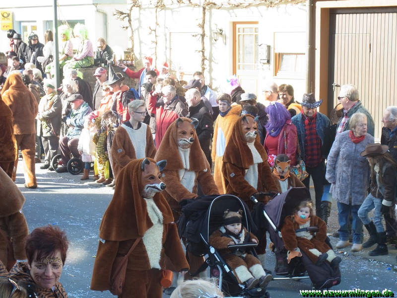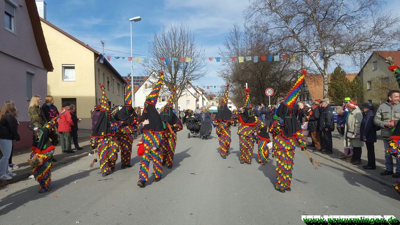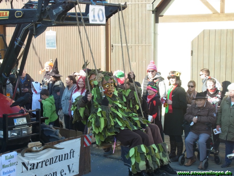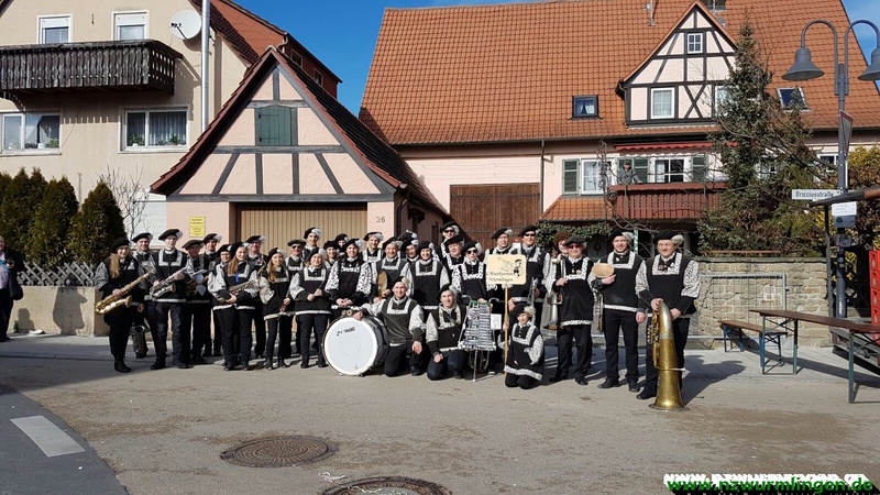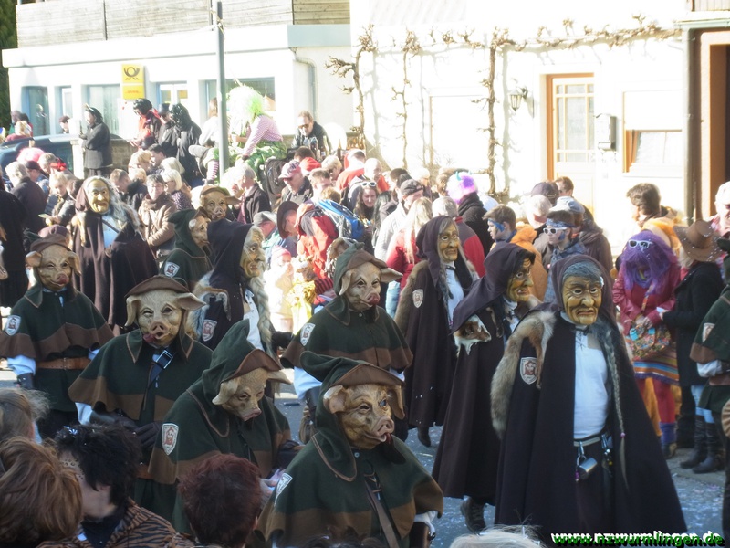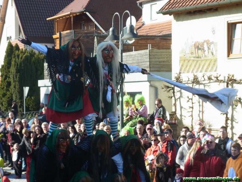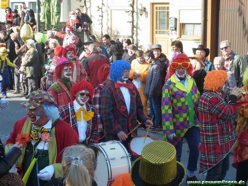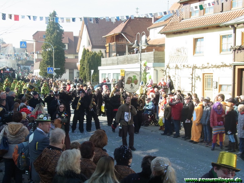 Fast pünktlich um kurz nach zwei startete die Narrenschar, angeführt vom Musikverein Wurmlingen. Bei Kaiserwetter mit strahlendem Sonnenschein und ca. 3000 Zuschauern begrüßten unsere Moderatoren