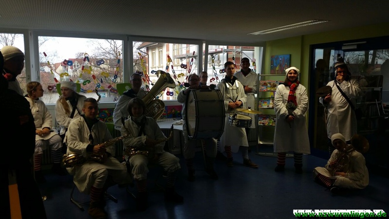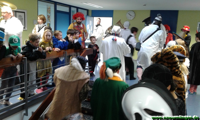 Schülerbefreiung. Nach kaum vorhandener Gegenwehr der Rektorin und ihren Lehrer-Untertanen, waren passend gekleidet als Clowns (könnten die das ganze Jahr anziehen :o)) , zogen wir zusammen mit den