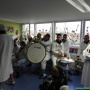 Da die Beschallungsanlage nicht so tat wie es sich unser Herr Zunfti vorgestellt hatte, wurf dieser vor lauter Anspannung das Mikro in ein vorbeilaufendes Tenorhorn. Naja, das Instrument und sein