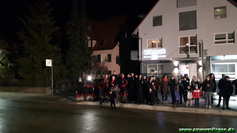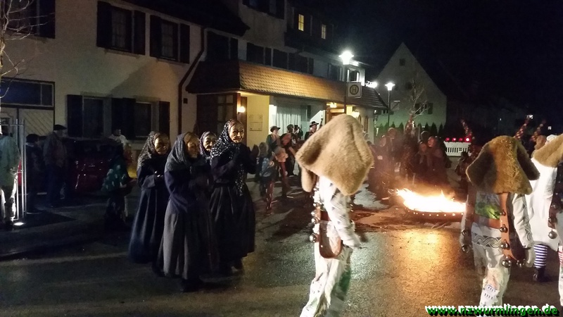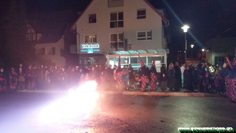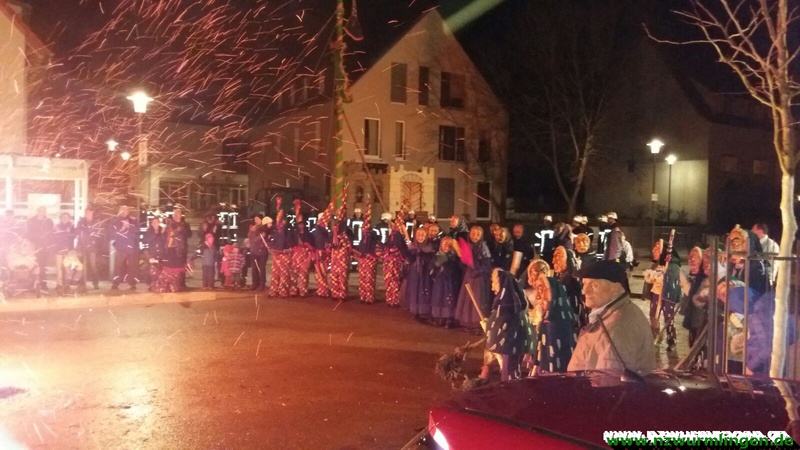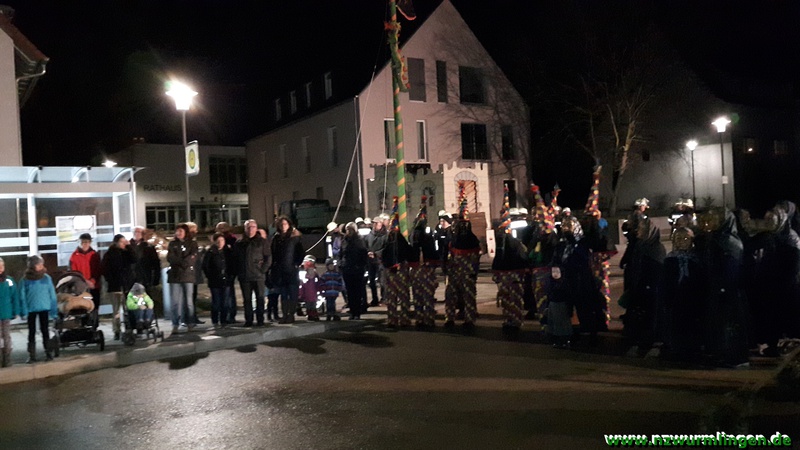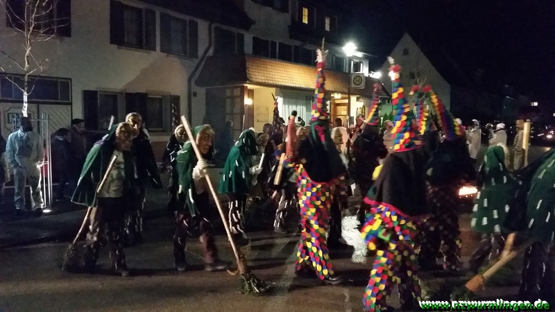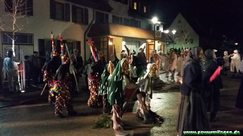wieder bei Brigitte Hess eintrafen. Nach kurzen Abschluss-Worten unseres Zunftmeisters gings dann angeführt von der Hemmedglonker-Kapelle vors Rößle. Hier wurde die Fasnet 2017 anhand der Gluthilde