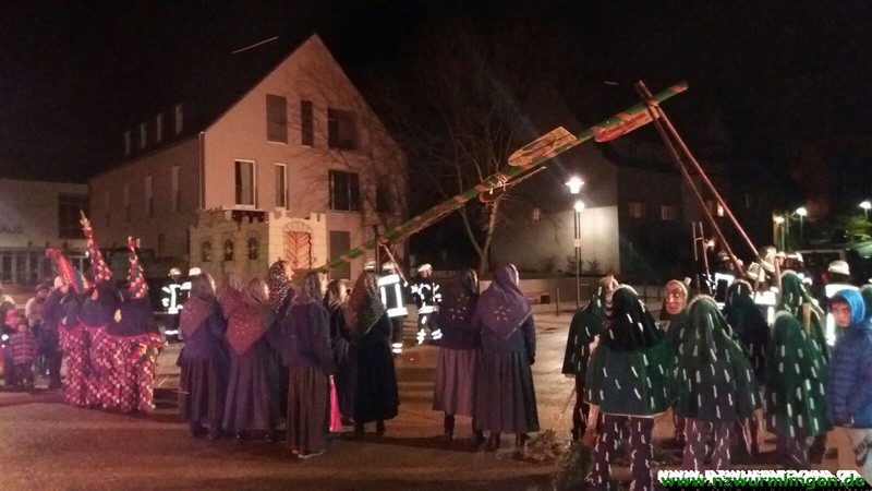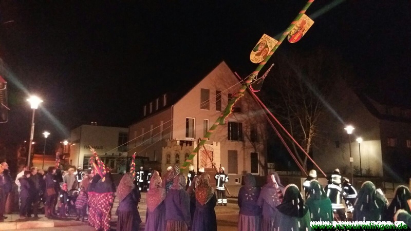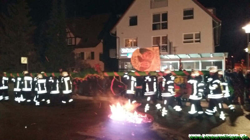 verbrannt und die Freiwillige Feuerwehr senkte den Narrenbaum.