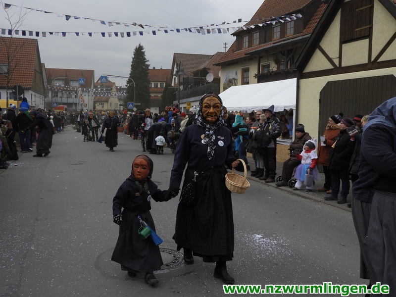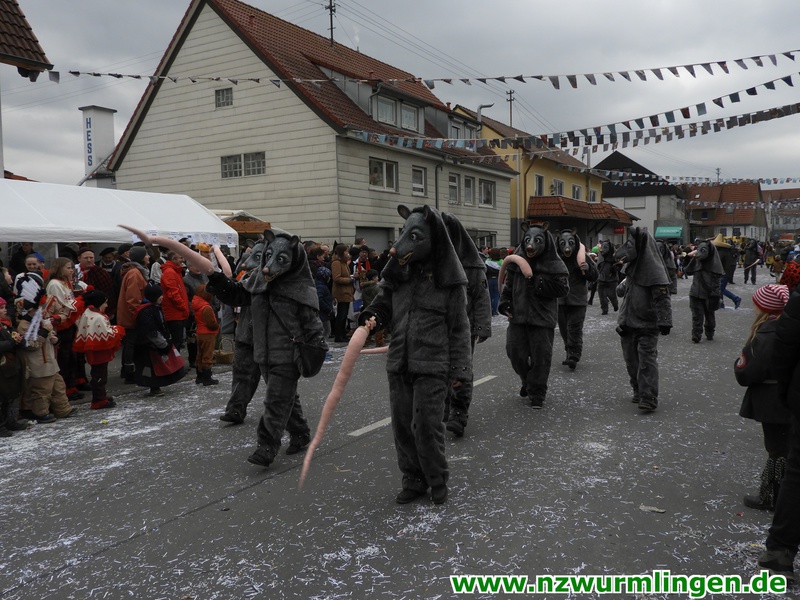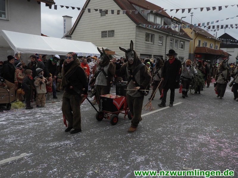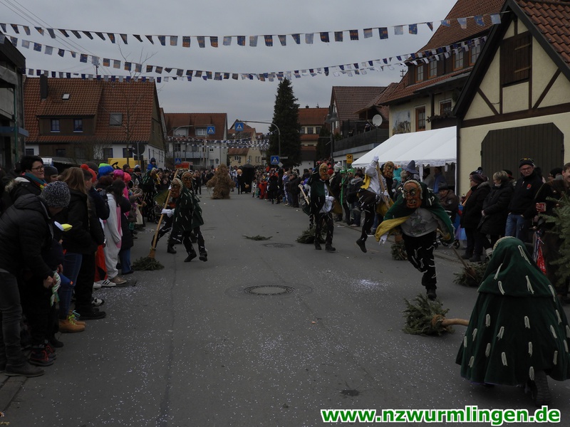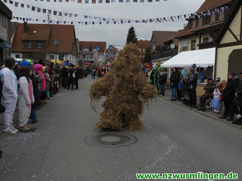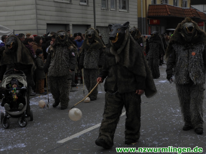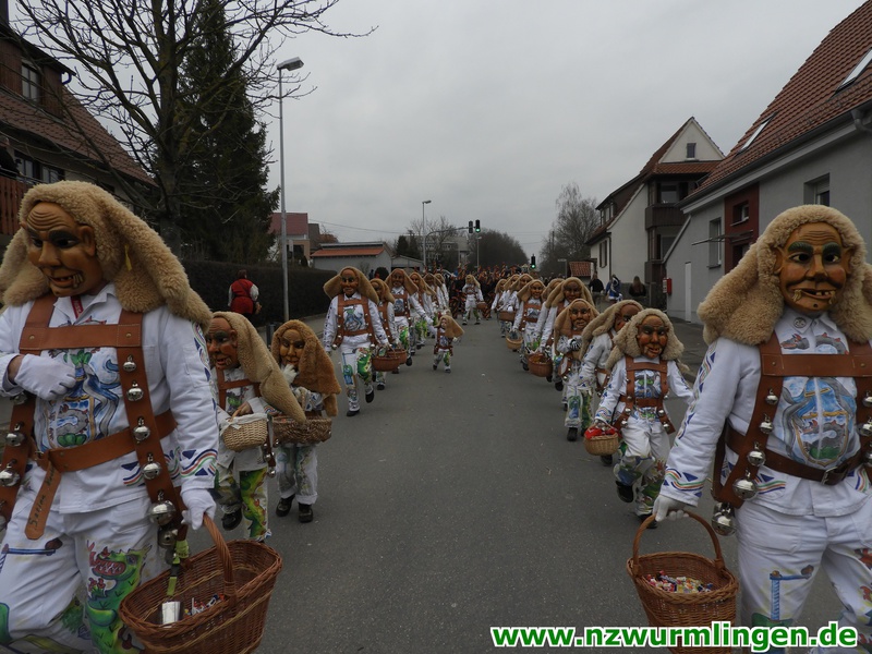 Zur Mittagszeit startete dann unsere Straßenfasnet und der Ort füllte sich mit mehr und mehr Narren aus Nah und Fern. Um kurz nach zwei startete dann der Umzug, angeführt vom Bittel Albrecht und dem Musikverein. Nach den Gastgebern geselten sich wieder Häser aus alten Tagen dazu. Die alte Wurmlinger Fasnet, hier sprechen die Bilder mehr als Worte. Auch der Strohbär welcher schriftlich 1852 schon in Wurmlingen in einem Buch bekundet wurde, gab sich die Ehre. Insgesamt ca. 2000 Narren aus über 50 Gruppen machten unseren Umzug wieder zu etwas ganz tollem. Belohnt wurden sie von 3000 Zuschauern entlang der Umzugsstrecke. Nach dem Umzug gings auf der Straßenfasnet und in der Halle weiter.