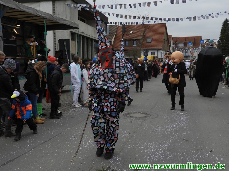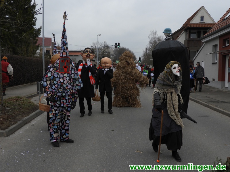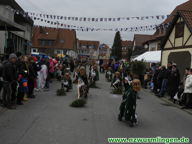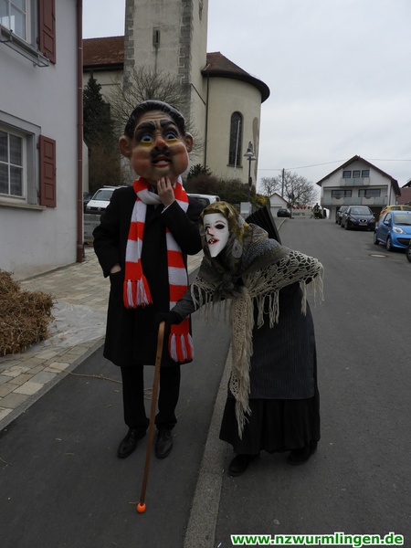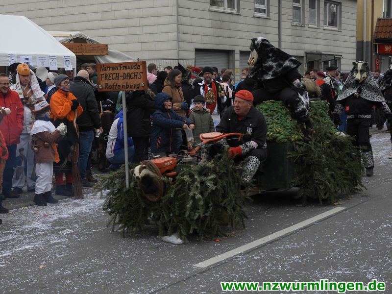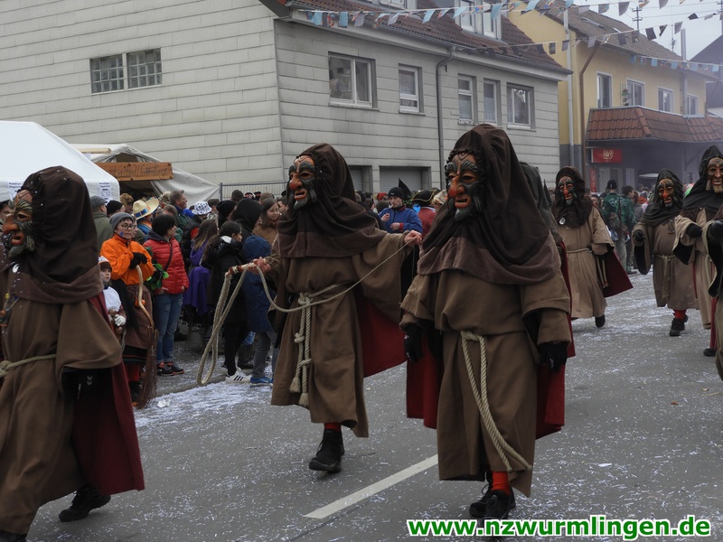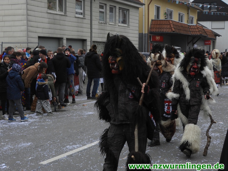Zur Mittagszeit startete dann unsere Straßenfasnet und der Ort füllte sich mit mehr und mehr Narren aus Nah und Fern. Um kurz nach zwei startete dann der Umzug, angeführt vom Bittel Albrecht und dem Musikverein. Nach den Gastgebern geselten sich wieder Häser aus alten Tagen dazu. Die alte Wurmlinger Fasnet, hier sprechen die Bilder mehr als Worte. Auch der Strohbär welcher schriftlich 1852 schon in Wurmlingen in einem Buch bekundet wurde, gab sich die Ehre. Insgesamt ca. 2000 Narren aus über 50 Gruppen machten unseren Umzug wieder zu etwas ganz tollem. Belohnt wurden sie von 3000 Zuschauern entlang der Umzugsstrecke. Nach dem Umzug gings auf der Straßenfasnet und in der Halle weiter.