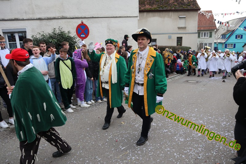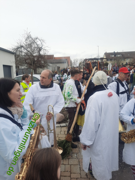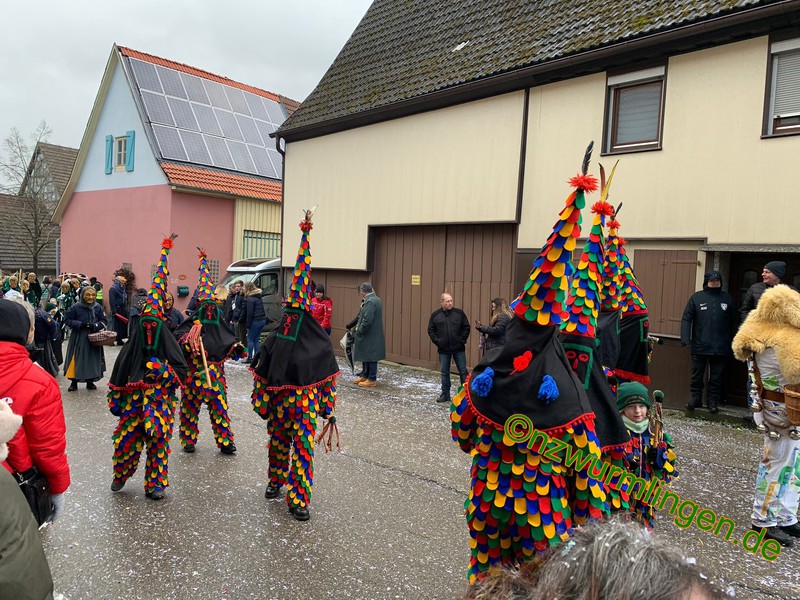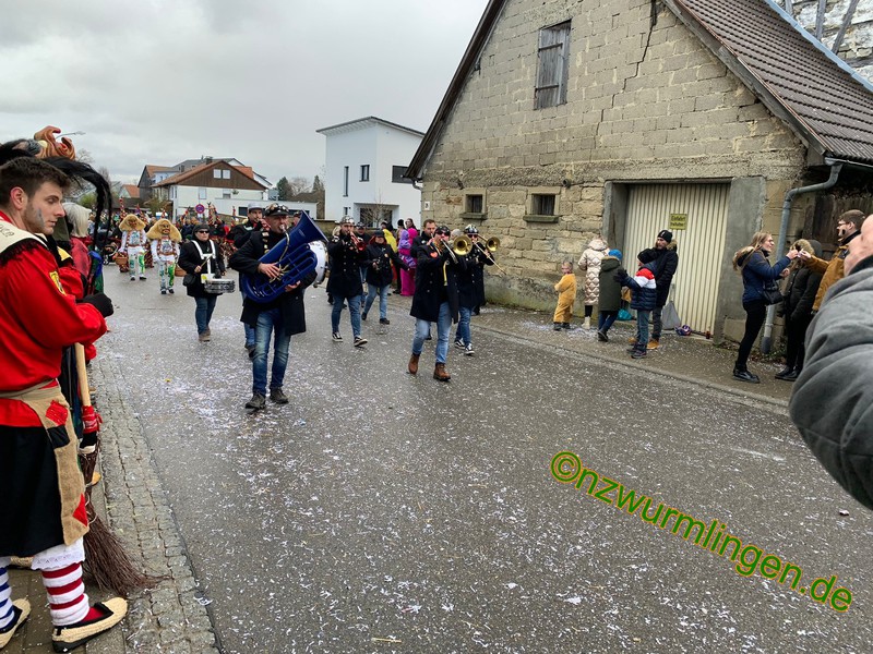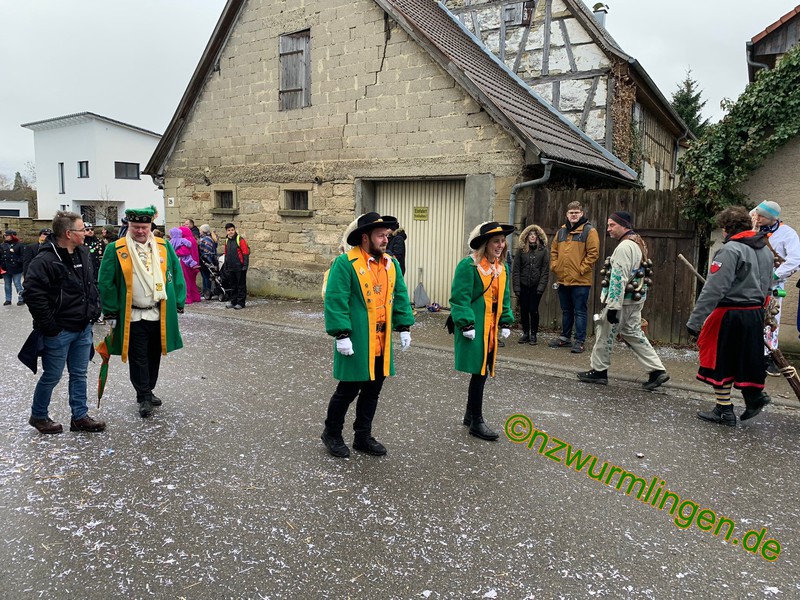 Am Samstag, den 14.01. folgten wir der Einladung der Narrenfreunde Wendelsheim zum 35-jährigen Jubiläum. Nach kurzem Fußmarsch waren wir im "Nochber-Flegga" angekommen und fanden uns zeitig an der Aufstellung ein, da wir man kanns kaum glauben, die Startnummer 3 hatten. Musikalisch wurden wir von der Wurmlinger Hemmedglonker-Kapelle begleitet. Das Wetter hielt zu Umzugsbeginn und die "Wendlezzer Gassen" waren dicht an dicht mit ordentlich Zuschauern gefüllt. Ein schöner Umzug mit kurzweiliger Umzugsstrecke. Den Mittag ließen wir dann gemütlich bei den Nachbarn ausklingen. Am Sonntag drauf gings weiter zum Umzug der NZ Hochdorf. Dort angekommen meinte es der "Wetter-Gott" noch nicht so gut mit uns, was sich dann aber zu Umzugsbeginn änderte. Am Rande des närrischen Treiben fanden sich einige Zuschauer ein und unsere Freunde der "Freien Narrentreiber SchwaHiRo" sorgten für die richtige Musik. Nachdem Umzug gings dann weiter auf dem Dorfplatz oder in der Hochdorfer-Halle, ehe mann dann am frühen Abend wieder mit dem Bus in Wurmlingen angekommen war.
