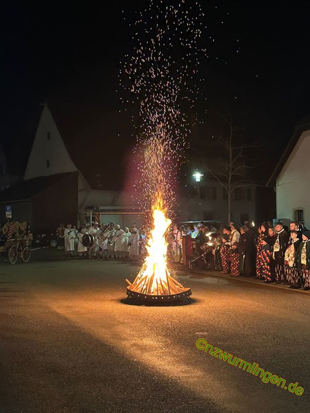 Am 06.01. stand bei uns Morgens das Sprungstab binden unserer Randelmäx am Schuppen auf dem Plan, ehe es dann Abends weiter ging mit dem Start in die Fasnet 2024. Wir trafen uns wie immer in den letzten 46 Jahren bei der Familie Hess und wurden dort beim Umtrunk verköstigt. Um 19 Uhr gings dann los Richtung Rößle, angeführt von der Wurmlinger Hemmedglonker-Kapelle. Vor dem Rößle fand dann unser traditionelles Abstauben statt und zum Abschluss gab es unseren Knöpfles-Tanz. Im Anschluss gings dann weiter in die Wurmlinger Gastshäuser, Besenwirtschaft Hoffmann oder ins Zunfthaus. Ein gelungener Abend leutete somit die Fasnet 2024 ein. Ein herzliches Dankeschön geht an die Wurmlinger Hemmedglonker-Kapelle, der freiwilligen Feuerwehr Wurmlingen, den Narrenfreunden Wurmlingen, allen Gästen und den Helfern vor und hinter den Kulissen.