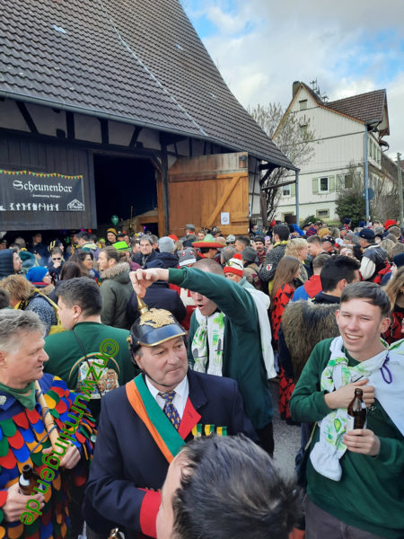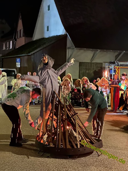 Zum letzten Umzug der Fasnet 2024 zogen wir aufs andere Neckarufer ins schöne Bühl. Unsere Freunde feierten ihr 60-jähriges Jubiläum und das bei bestem Wetter, toller Stimmung am Umzugsrand und einer tollen Anzahl an Gastgruppen. Wie sagte unser Peter so schön, "Bühl ist zum Schluss einer der schönsten Umzüge" und dass hat er wirklich auf den Punkt gebracht. Musikalisch wurden wir ein letztes Mal von unserer Wurmlinger Hemmedglonker Kapelle begleitet und diese machten mal wieder eine Hammer Musik. Nachden schönen Stunden in Bühl gings für uns dann zurück und am Abend stand leider das Ende der Fasnet 2024 vor der Türe, unsere Fasnetsverbrennung. Nach kurzem Umtrunk bei Familie Hess zogen wir angeführt von der Hemmedglonker Kapelle vors Rößle.