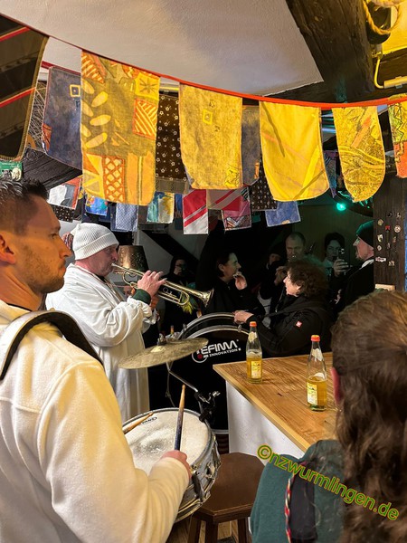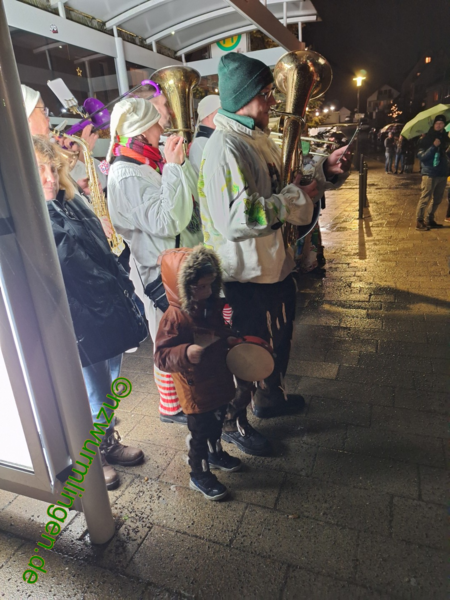 Nachdem wir uns traditionell bei der Familie Hess zum Umtrunk getroffen und eingestimmt hatten, gings um 19 Uhr los Richtung Gasthaus Rössle, angeführt von der Wurmlinger Hemmedglonker Kapelle. Dort