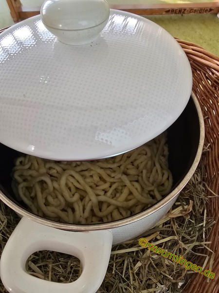 Es gab sogar einen Topf mit heißen Knöpfle, der im Korb mit „Saumist“ warm gehalten wurde.