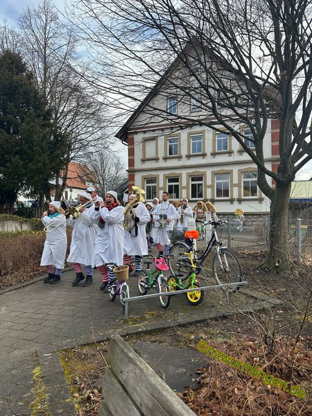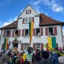 Nach dem Mittag drehte sich dann alles um die Kinder und den Narrensamen. Wir sind gemeinsam vom Schulhof zum Zunfthaus gezogen, wo sich unsere Ortschaftsräte schon mit Angeln für das Wurstschnappen